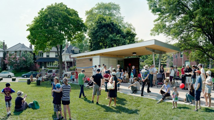 Scott McFarland, Pavilion Ribbon Cutting Ceremony, Jean Sibelius Square Park, June 10, 2012, Toronto, 2013, Archival inkjet type print, Courtesy of the artist