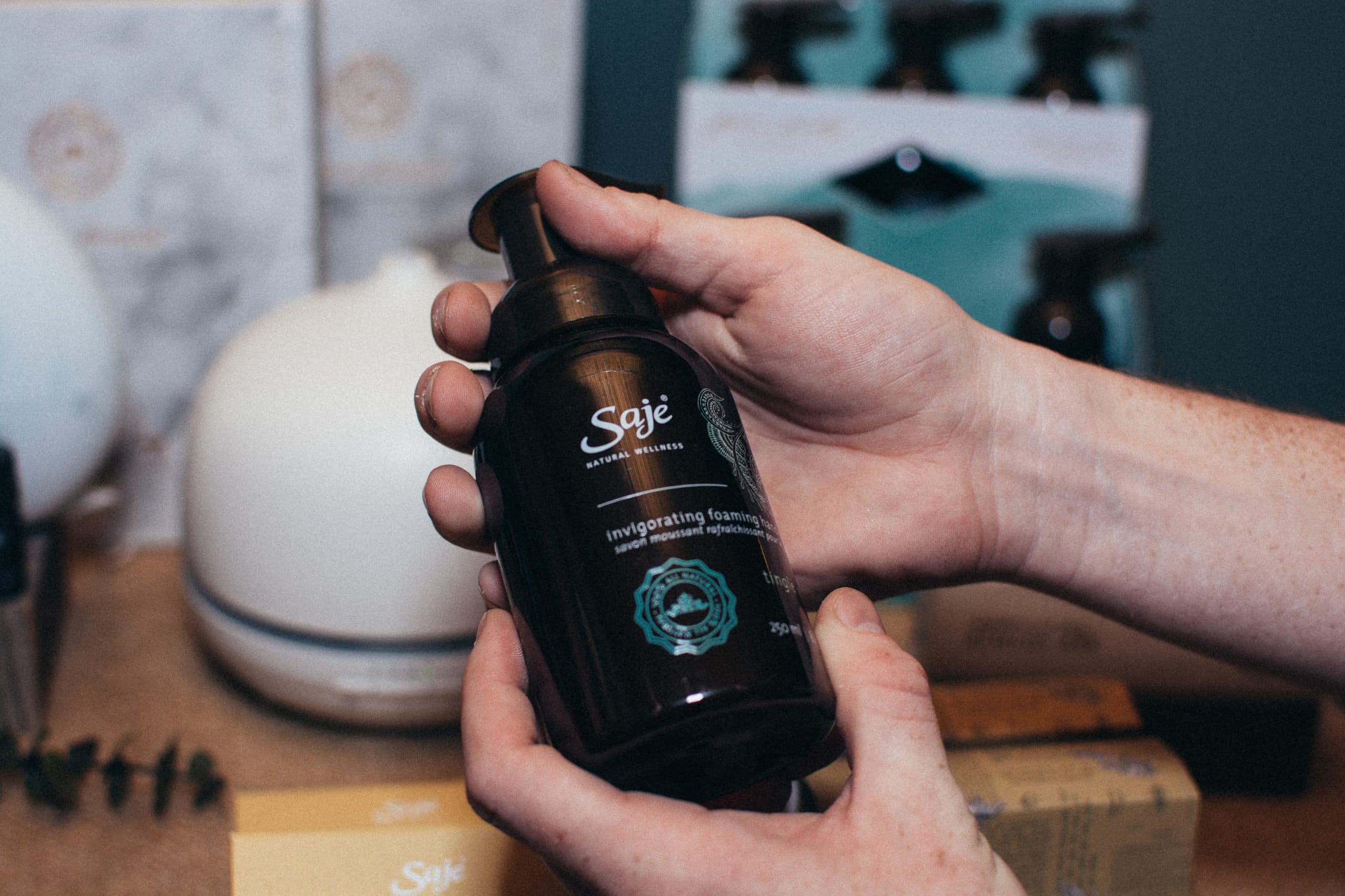 In the NKPR showroom, Saje Natural Wellness’ display filled the air with the vitality restoring scent of Refresh diffuser blend oil, steaming from their signature nebulizers. Guests enjoyed getting to know the benefits of Saje’s natural healing products like the stress reducing Sleep Well roll on and invigorating Tingle Mint hand soap.